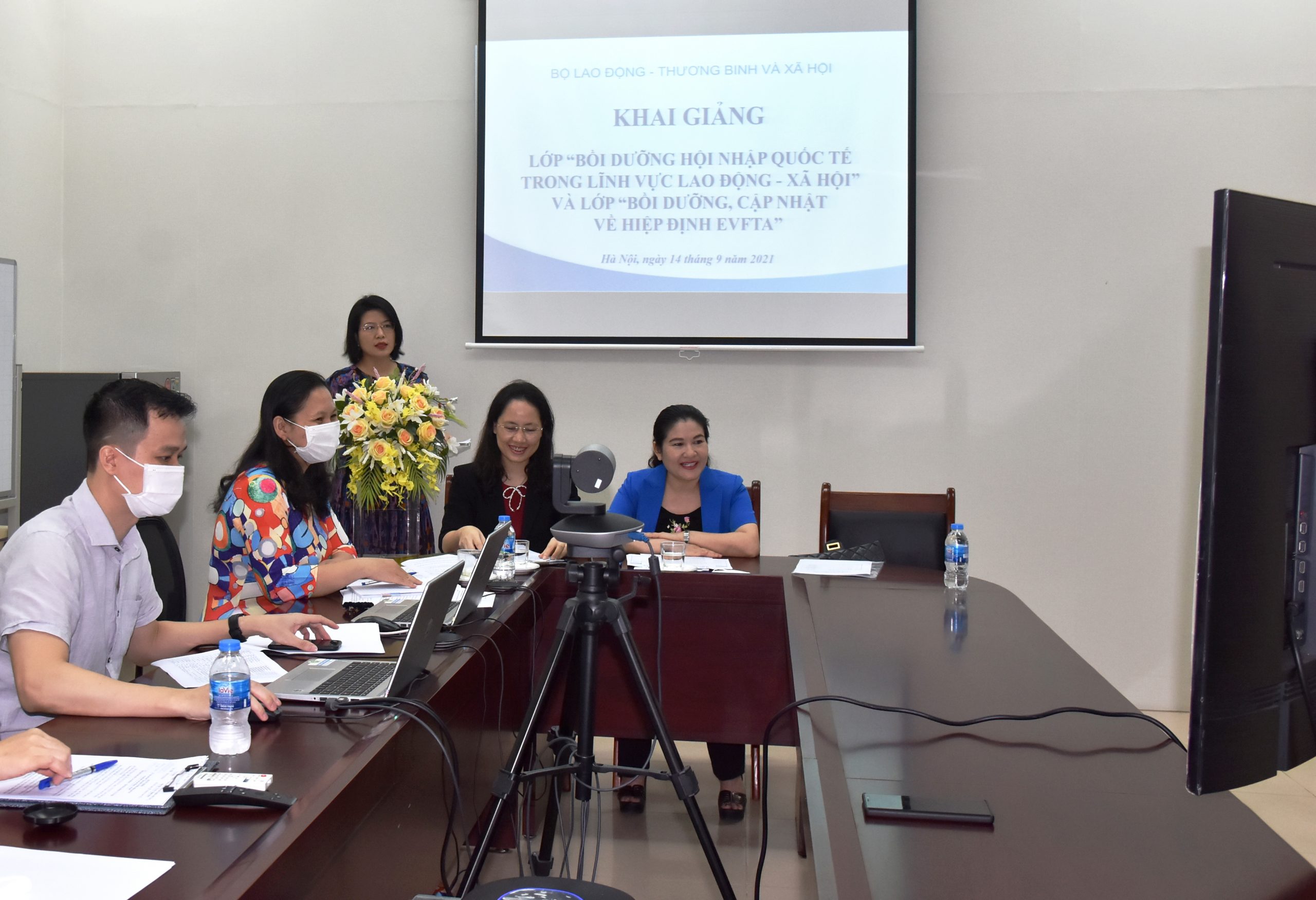 Sáng ngày 14/9, Vụ Tổ chức cán bộ, Vụ Hợp tác quốc tế và Trường Đào tạo, bồi dưỡng cán bộ công chức lao động – xã hội (Bộ LĐTBXH) phối hợp tổ chức Lễ khai giảng Lớp “Bồi dưỡng kiến thức về Hội nhập quốc tế trong lĩnh vực lao động và xã hội” và Lớp “Bồi dưỡng, cập nhật về Hiệp định EVFTA” theo hình thức trực tuyến. Thứ trưởng Nguyễn Thị Hà tới dự và phát biểu chỉ đạo tại Lễ khai giảng.