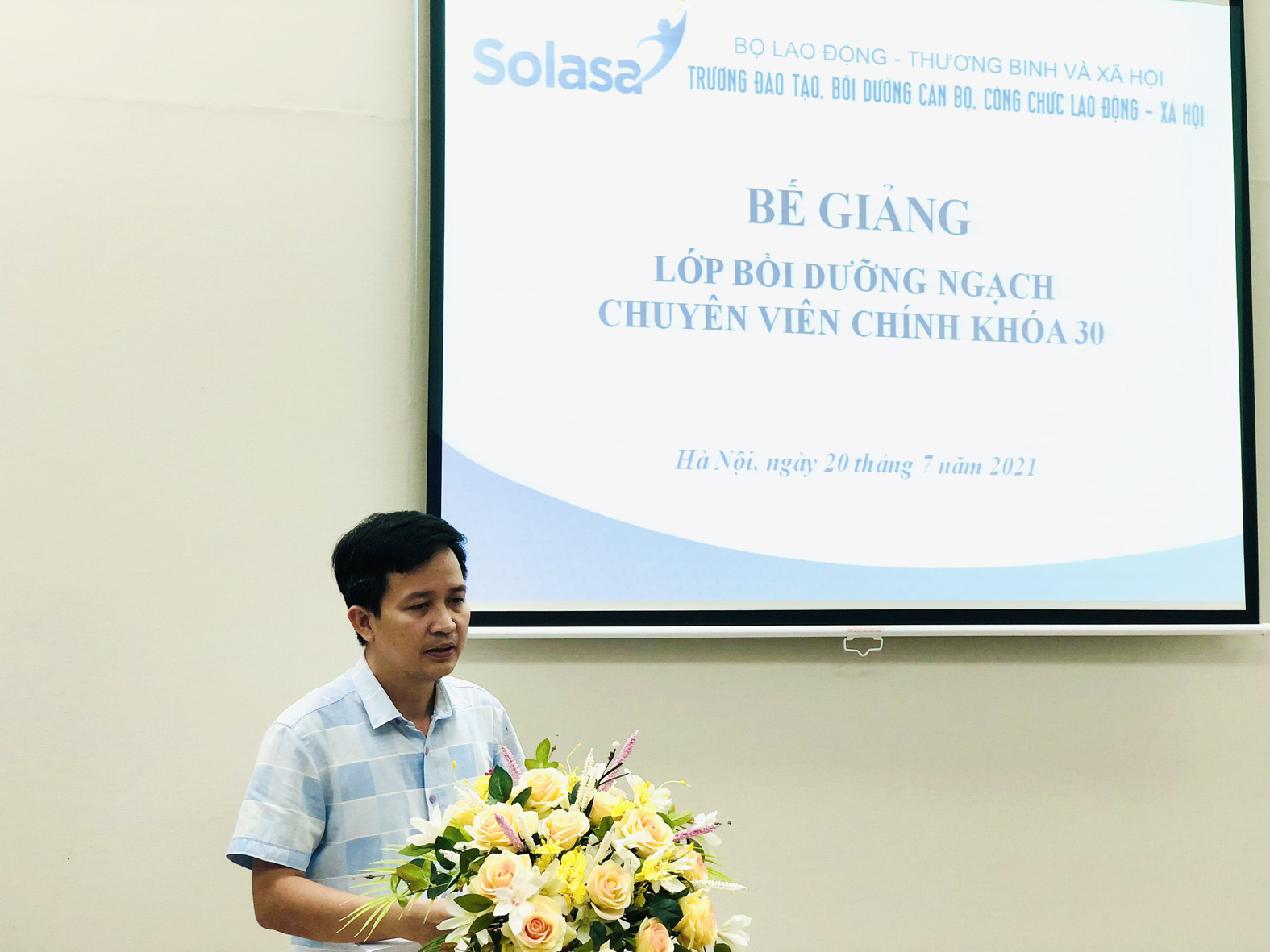 Phát biểu tại bế giảng, Ông Lê Đức Quang, Chuyên viên cao cấp – Phó Hiệu trưởng Nhà trường biểu dương các kết quả mà các học viên đã đạt được dù trong hoàn cảnh diễn biến phức tạp của dịch Covid-19 nhưng bằng tất cả sự cố gắng, nỗ lực thời gian khá hạn hẹp, đặc thù công việc của các học viên đều rất bận rộn nhưng đã thu xếp, bố trí công việc ở cơ quan, tham gia đầy đủ các buổi học cũng như các hoạt động của lớp. Ông Lê Đức Quang hy vọng rằng sau khóa học, về với đơn vị mình, các học viên sẽ vận dụng những kiến thức có được vào công tác điều hành, quản lý tại cơ quan, đơn vị, đồng thời mỗi người, đều nâng cao khả năng xây dựng chính sách hợp lý, hiệu quả và phù hợp với thực tế cuộc sống.