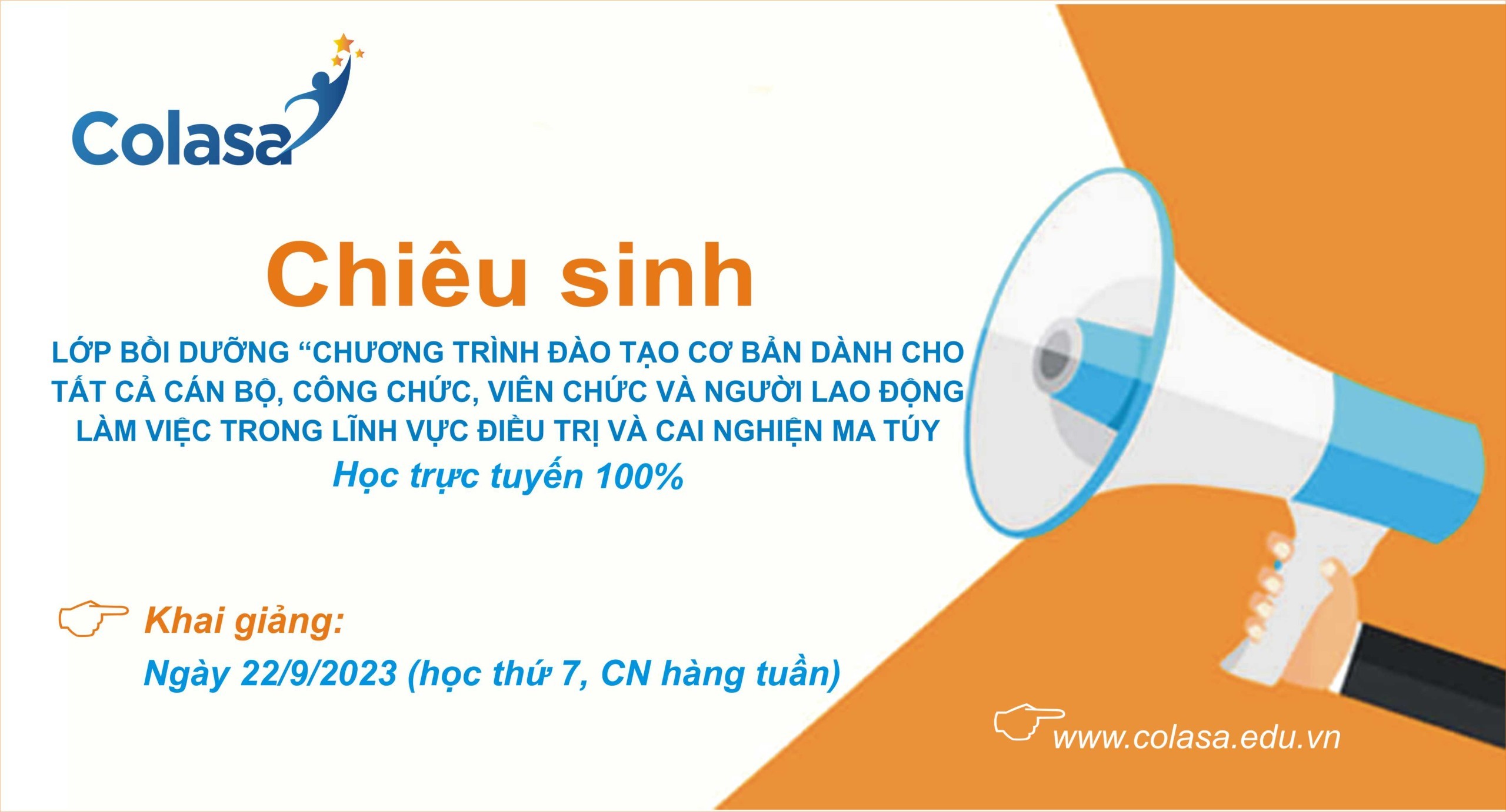 Trung tâm Đào tạo, bồi dưỡng cán bộ, công chức lao động – xã hội, Trường Đại học Lao động – Xã hội tổ chức chiêu sinh lớp “Chương trình đào tạo cơ bản dành cho tất cả cán bộ, công chức, viên chức và người lao động làm việc trong lĩnh vực điều trị và cai nghiện ma túy” theo hình thức học từ xa (trực tuyến), cụ thể như sau:
