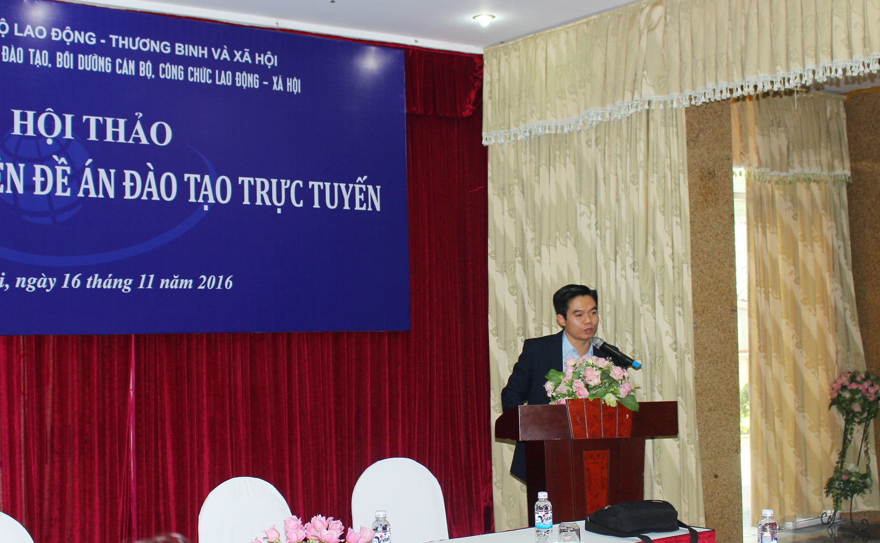 Phát biểu khai mạc tại Hội thảo, TS. Phạm Trường Giang – Hiệu trưởng Trường Đào tạo, bồi dưỡng cán bộ, công chức lao động – xã hội nhấn mạnh tầm quan trọng của ứng dụng công nghệ thông tin (CNTT) trong giáo dục, đặc biệt là đào tạo, bồi dưỡng từ xa cho các cán bộ, công chức, viên chức có nhu cầu cập nhật và bổ sung kiến thức liên quan đến lĩnh vực chuyên môn nói chung và đối với các cán bộ, công chức, viên chức ngành lao động – thương binh và xã hội nói riêng.