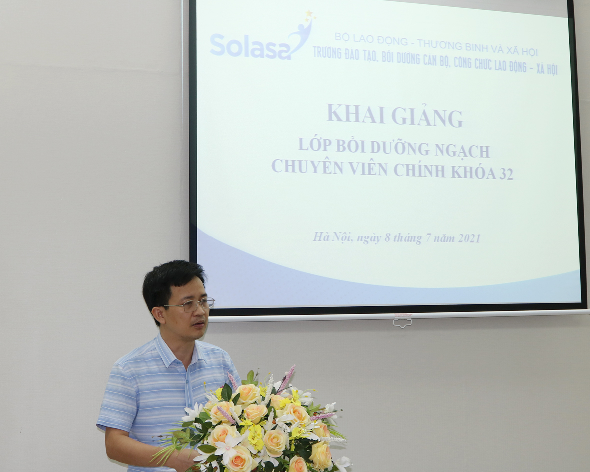 Phát biểu tại buổi khai giảng, Ông Lê Đức Quang, CVCC – Phó Hiệu trưởng nhà trường chào mừng các học viên tham gia lớp học. Đồng thời khẳng định, Trường Đào tạo, bồi dưỡng cán bộ, công chức lao động – xã hội luôn dành điều kiện tốt nhất cho các lớp bồi dưỡng, đặc biệt là các lớp bồi dưỡng cán bộ. Đồng chí mong rằng các công chức, viên chức tham gia lớp học sẽ có khoảng thời gian bổ ích, tiếp thu được tối đa kiến thức được truyền đạt để khi hoàn thành khóa học sẽ áp dụng sáng tạo trong công tác để hoàn thành mọi nhiệm vụ được giao.