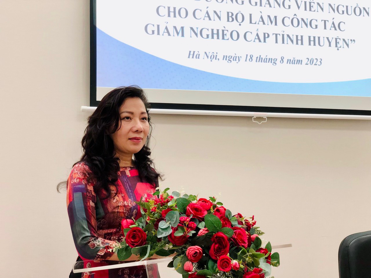 Phát biểu tại buổi khai giảng khóa học, TS. Nguyễn Thị Vân, Phó hiệu trưởng Trường Đại học Lao động – Xã hội, Giám đốc Trung tâm Đào tạọ, bồi dưỡng cán bộ, công chức lao động – xã hội đã nhấn mạnh mục tiêu của lớp học nhằm nâng cao năng lực cho đội ngũ cán bộ vừa có chuyên môn vừa có nghiệp vụ giảng dạy để làm giảng viên nguồn, nâng cao năng lực cho cán bộ làm công tác giảm nghèo tại địa phương…. Tại bài phát biểu, TS. Nguyễn Thị Vân mong muốn các giảng viên nhiệt tình chia sẻ, trao đổi kiến thức, kinh nghiệm qua phương pháp giảng dạy tích cực, hiện đại, giúp cho các học viên tiếp thu được tốt nhất những nội dung kiến thức, kỹ năng chuyên môn của khóa học cũng như có khả năng ứng dụng và truyền đạt cao nhất các kiến thức, kỹ năng này. Đồng chí cũng kỳ vọng tất cả học viên của khóa học nêu cao tinh thần trách nhiệm, nghiêm túc chấp hành, nội quy, chương trình khóa học, lắng nghe và tích cực tham gia vào các phần thảo luận, hỏi đáp để tìm sâu hơn và rõ hơn các nội dung giảng viên truyền đạt cũng như chia sẻ, học hỏi kinh nghiệm từ thực tiễn, từ các học viên khác đề làm giàu thêm kiến thức, kỹ năng của bản thân.
