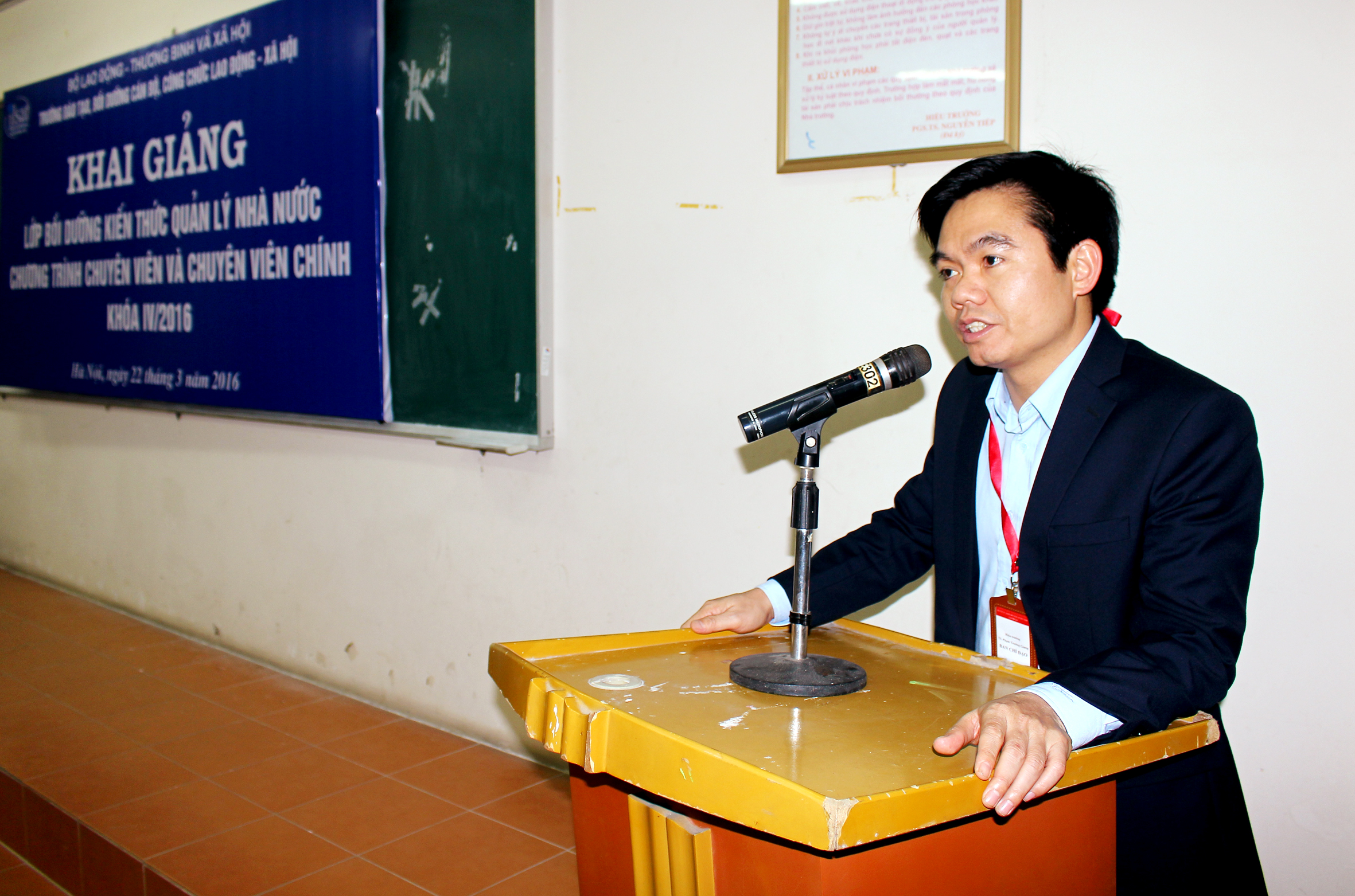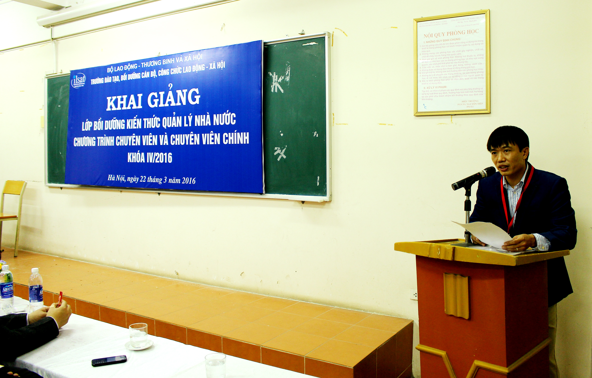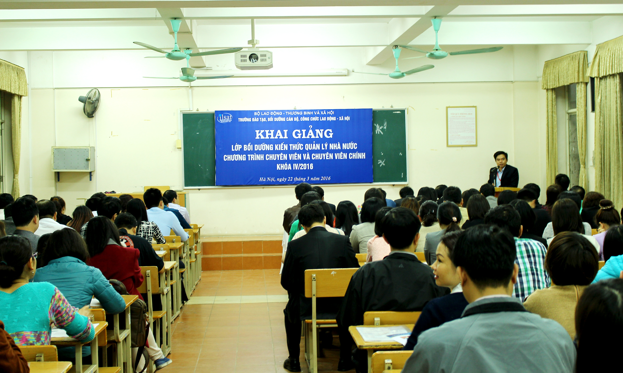 Thực hiện kế hoạch đào tạo, bồi dưỡng năm 2016, chiều ngày 22/3/2016 Trường Đào tạo, bồi dưỡng cán bộ, công chức lao động – xã hội (Bộ Lao động – Thương binh và Xã hội) tổ chức khai giảng Lớp bồi dưỡng kiến thức quản lý nhà nước chương trình chuyên viên và chuyên viên chính – Khóa IV/2016.