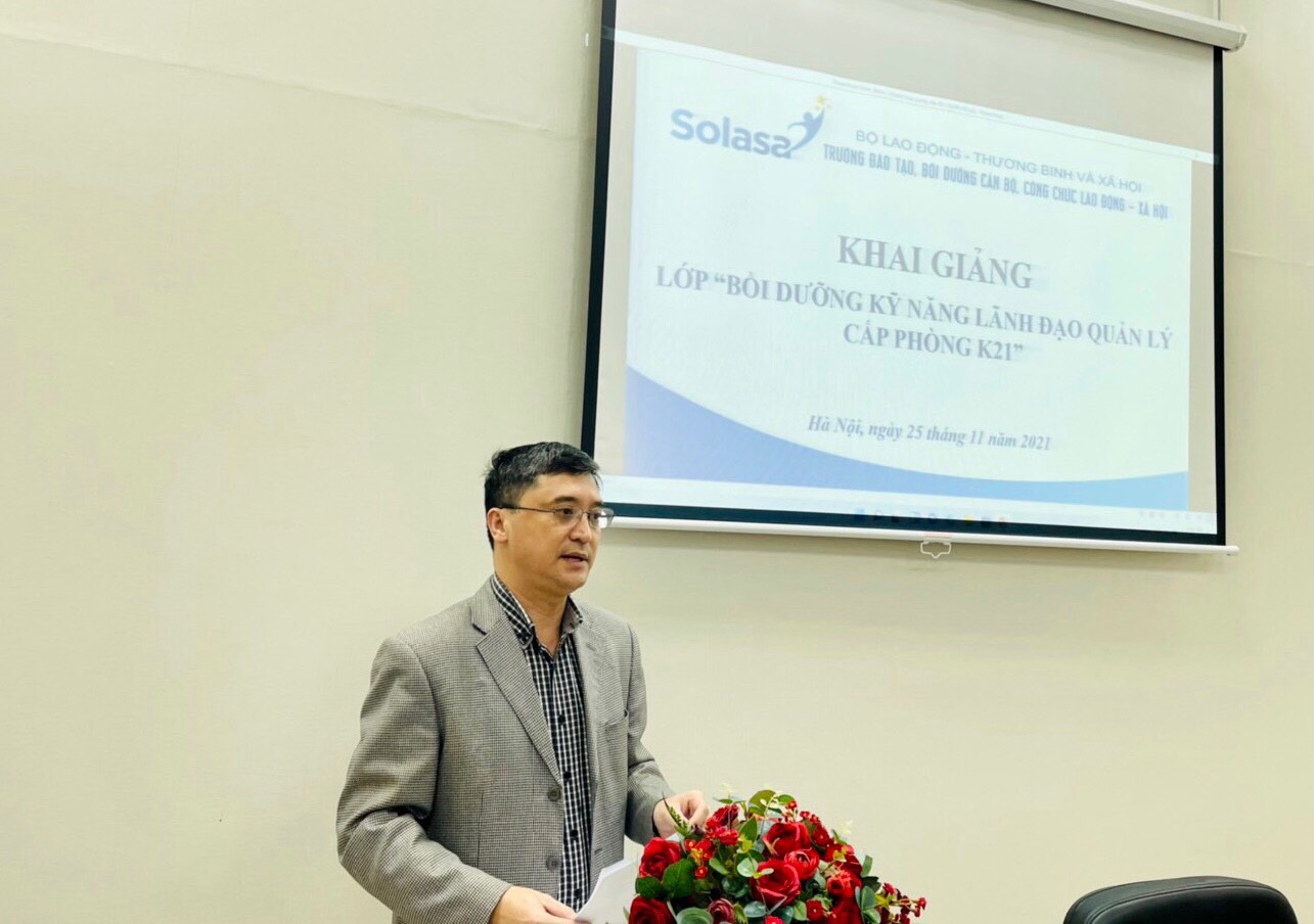 Sáng ngày 25/11/2021 tại Trường Đào tạo, bồi dưỡng cán bộ, công chức lao động – xã hội đã tổ chức Lễ khai giảng khóa học “Bồi dưỡng kỹ năng lãnh đạo, quản lý cấp Phòng” khóa 21 năm 2021 cho gần 112 cán bộ lãnh đạo cấp phòng, quy hoạch lãnh đạo cấp phòng và tương đương của các đơn vị thuộc và trực thuộc các tỉnh, thành phố như: Quảng Ninh, Đồng Tháp, Bến Tre, TP Hồ Chí Minh, Hà Nội bằng hình thức trực tuyến.