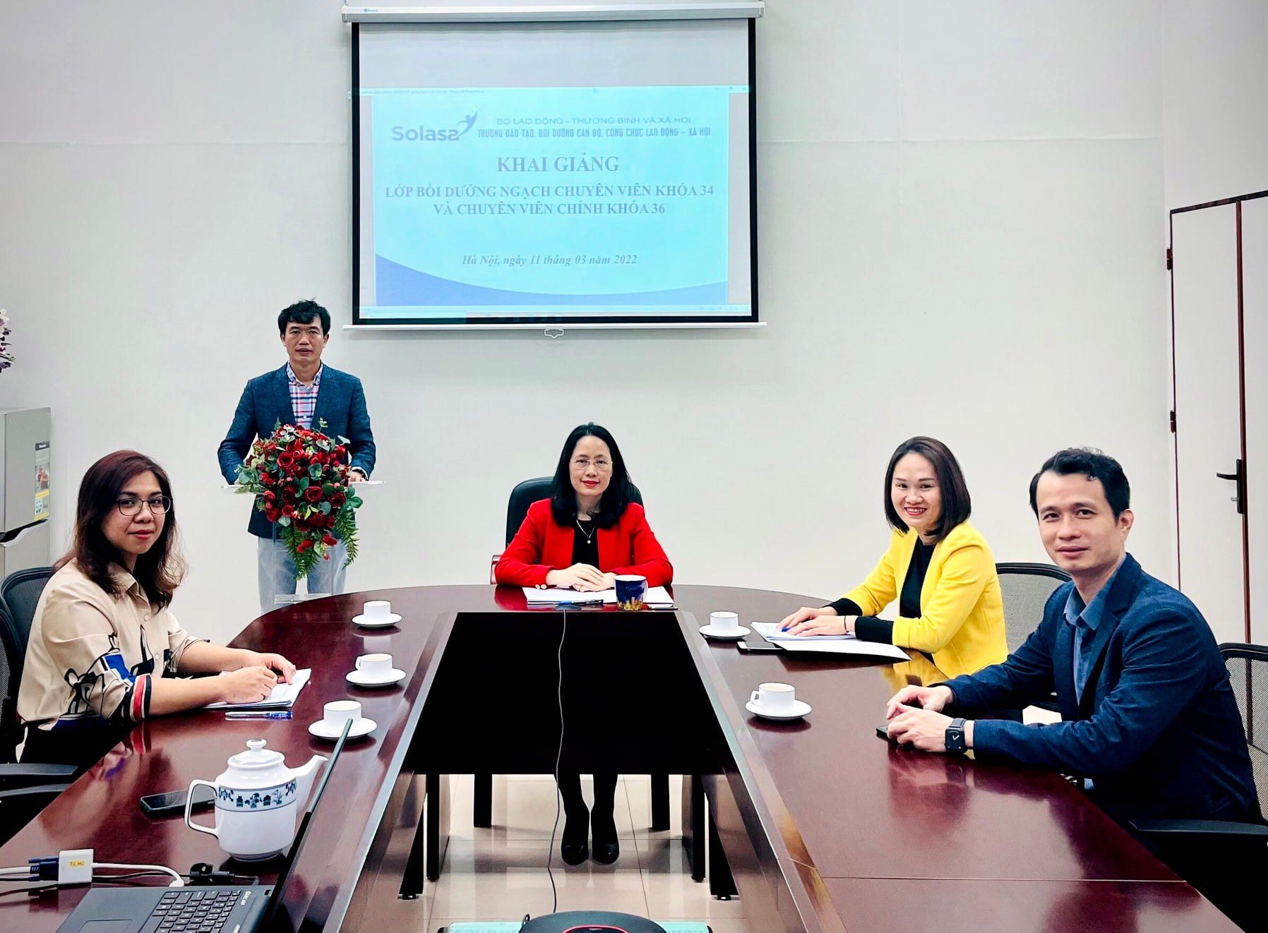Chiều ngày 11/3/2022, Trường Đào tạo, bồi dưỡng cán bộ, công chức lao động – xã hội, Bộ lao động – Thương binh và Xã hội tổ chức khai giảng lớp Bồi dưỡng ngạch chuyên viên khóa 34 và lớp Bồi dưỡng ngạch chuyên viên chính khóa 36 năm 2022. Tới dự có Bà Vũ Ngọc Thủy – Hiệu trưởng Nhà trường, cùng Lãnh đạo các Phòng/khoa trong Nhà trường.