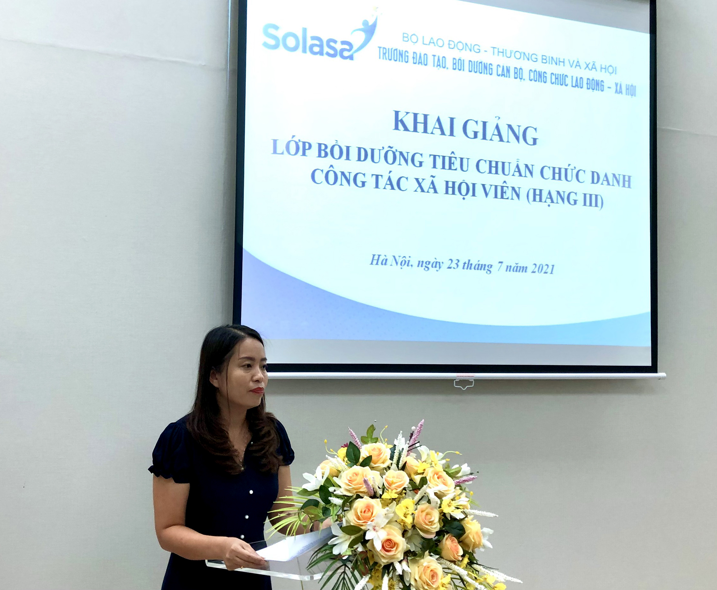 Phát biểu tại buổi Lễ khai giảng, Bà Vũ Ngọc Thủy, Hiệu trưởng Nhà trường đã nêu bật ý nghĩa và tầm quan trọng của việc bồi dưỡng tiêu chuẩn chức danh nghề nghiệp viên chức chuyên ngành công tác xã hội và mong muốn các Giảng viên nhiệt tình chia sẻ, trao đổi kiến thức, kinh nghiệm qua phương pháp giảng dạy tích cực, hiện đại, giúp cho các học viên tiếp thu được tốt nhất những nội dung kiến thức, kỹ năng chuyên môn của khóa học cũng như có khả năng ứng dụng và truyền đạt cao nhất các kiến thức, kỹ năng này. Bà Vũ Ngọc Thủy cũng kỳ vọng tất cả Học viên của Khóa học nêu cao tinh thần trách nhiệm, nghiêm túc chấp hành, nội quy, chương trình khóa học, lắng nghe và tích cực tham gia vào các phần thảo luận, hỏi đáp để tìm sâu hơn và rõ hơn các nội dung giảng viên truyền đạt cũng như chia sẻ, học hỏi kinh nghiệm từ thực tiễn, từ các học viên khác đề làm giàu thêm kiến thức, kỹ năng của mình.