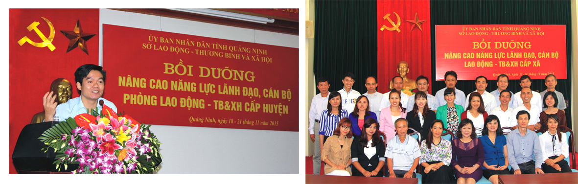 Tại buổi khai giảng khóa tập huấn, TS. Phạm Trường Giang, Hiệu trưởng Trường Đạo tạo, bồi dưỡng cán bộ, công chức lao động – xã hội phát biểu: Về phía Trường Đào tạo, bồi dưỡng cán bộ, công chức lao động – xã hội, nhận thức Đề án “Đào tạo, bồi dưỡng nâng cao năng lực chất lượng và phát triển toàn diện nguồn nhân lực tỉnh Quảng Ninh năm 2015” là một hoạt động rất có ý nghĩa, phù hợp với chức năng, nhiệm vụ của Trường là hỗ trợ, nâng cao năng lực cho cán bộ làm việc trong lĩnh vực lao động, người có công và xã hội từ trung ương đến địa phương, qua đó, tăng cường sự kết nối giữa các đơn vị quản lý nhà nước ở Trung ương với cơ sở, Trường đã phối hợp với các Cục, Vụ, Viện thuộc Bộ xây dựng và thực hiện một chương trình bồi dưỡng, hệ thống và cập nhật các kiến thức, kỹ năng cơ bản theo 11 lĩnh vực quản lý nhà nước của ngành. Chương trình bồi dưỡng cho cán bộ cấp xã bao gồm 10 chuyên đề lý thuyết và 5 chuyên đề về kỹ năng; chương trình cho cán bộ cấp Phòng bao gồm 12 chuyên đề lý thuyết và 3 chuyên đề về kỹ năng. Giảng viên cho khoá tập huấn, bên cạnh các giảng viên tới từ Trường Đào tạo, bồi dưỡng cán bộ công chức LĐXH, là các cán bộ lãnh đạo, chuyên gia tới từ các đơn vị trong Bộ như: Cục Người có công, Cục Bảo vệ và Chăm sóc trẻ em, Tổng cục Dạy nghề, Thanh Tra Bộ, Viện Khoa học Lao động – xã hội…