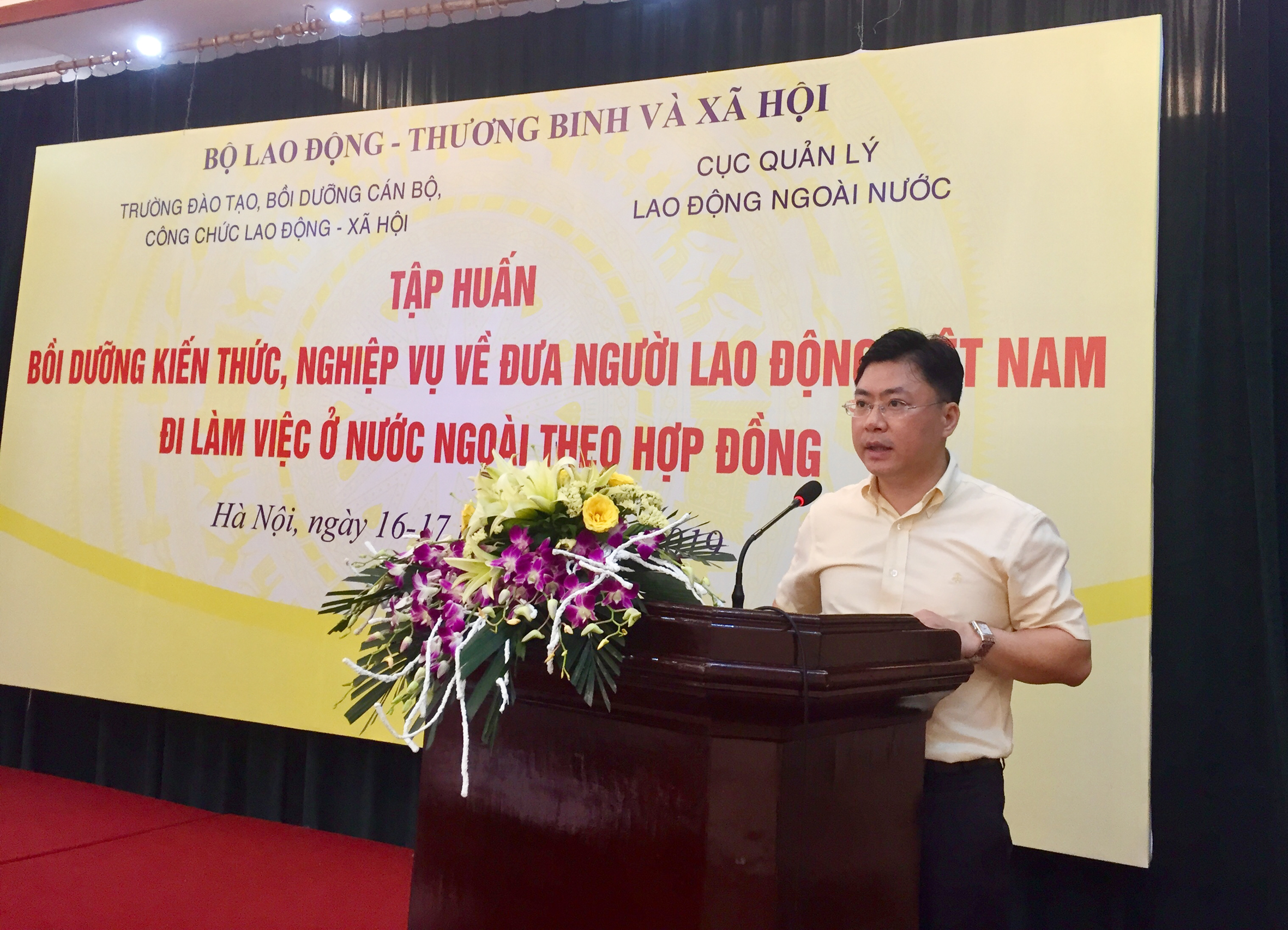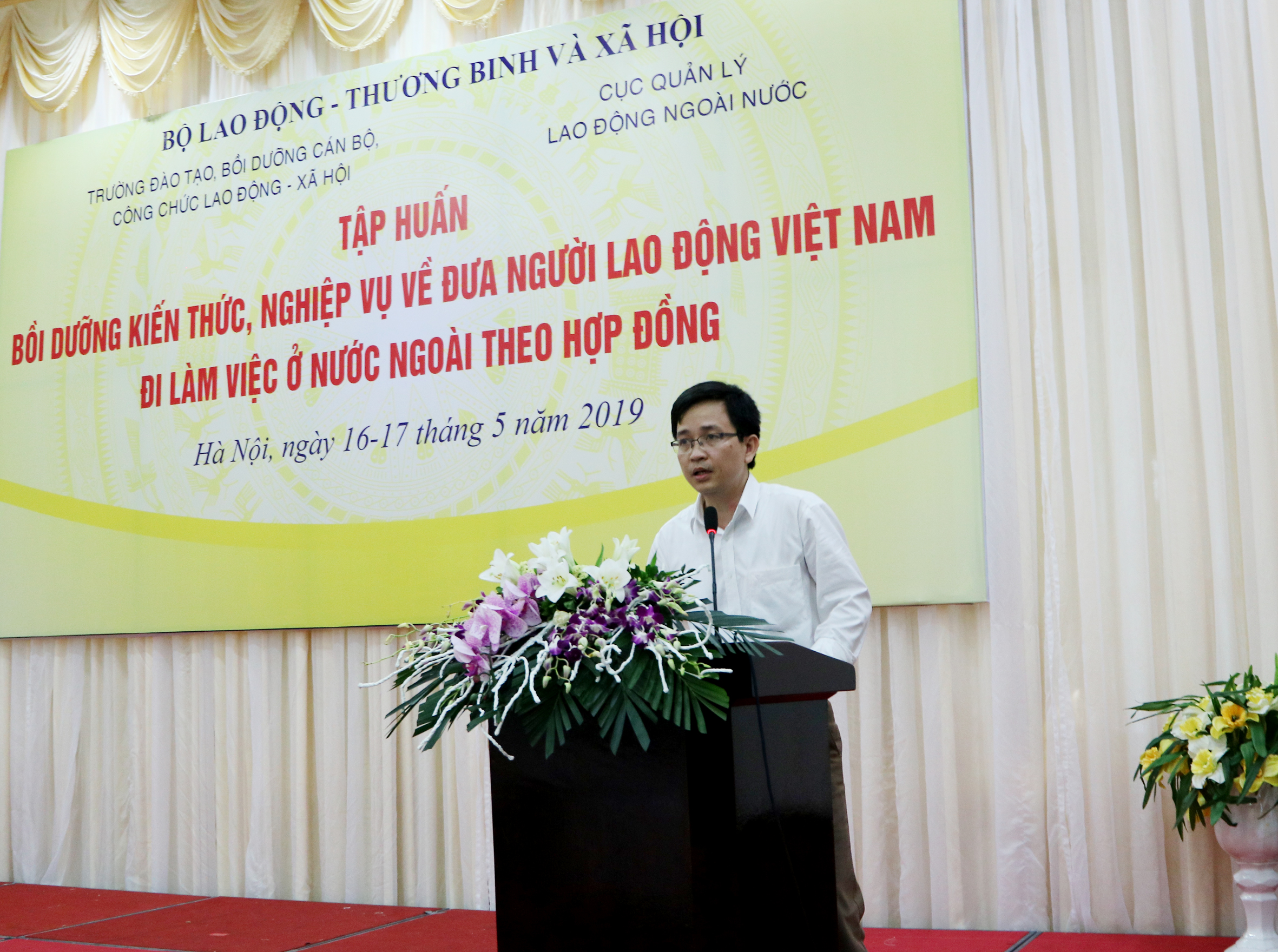 Phát biểu tại buổi lễ, đại diện lãnh đạo Cục Quản lý lao động ngoài nước ông Nguyễn Gia Liêm và ông Đặng Sĩ Dũng nhấn mạnh việc đưa lao động đi làm việc ở nước ngoài theo hợp đồng là công việc đặc thù và liên quan chặt chẽ đến con người và gắn với các yếu tố quốc tế. Chính vì vậy bồi dưỡng và nâng cao kiến thức kiến thức, nghiệp vụ về đưa lao động đi làm việc ở nước ngoài đối với những người làm công tác xuất khẩu lao động trong các doanh nghiệp là rất cần thiết.