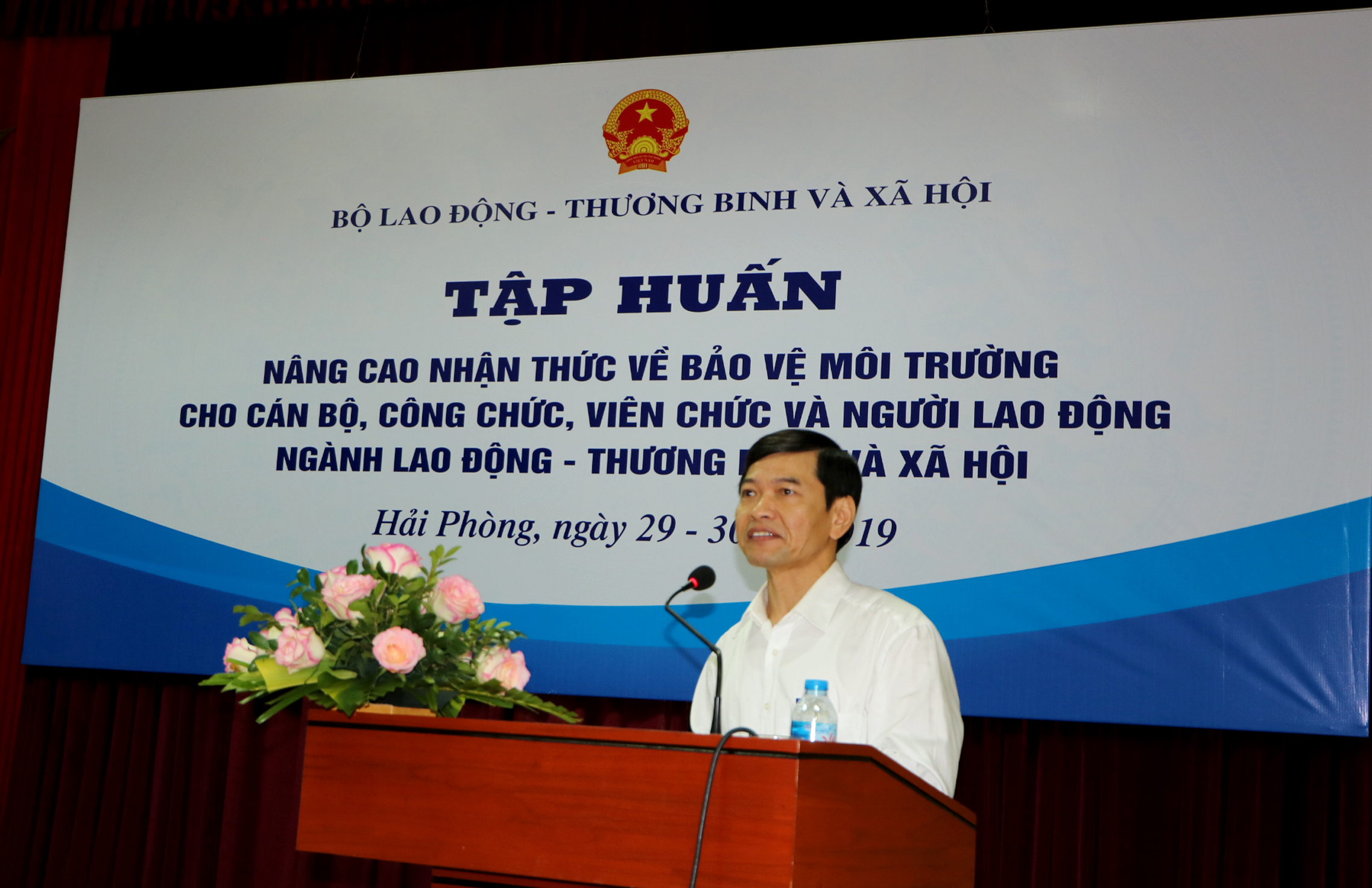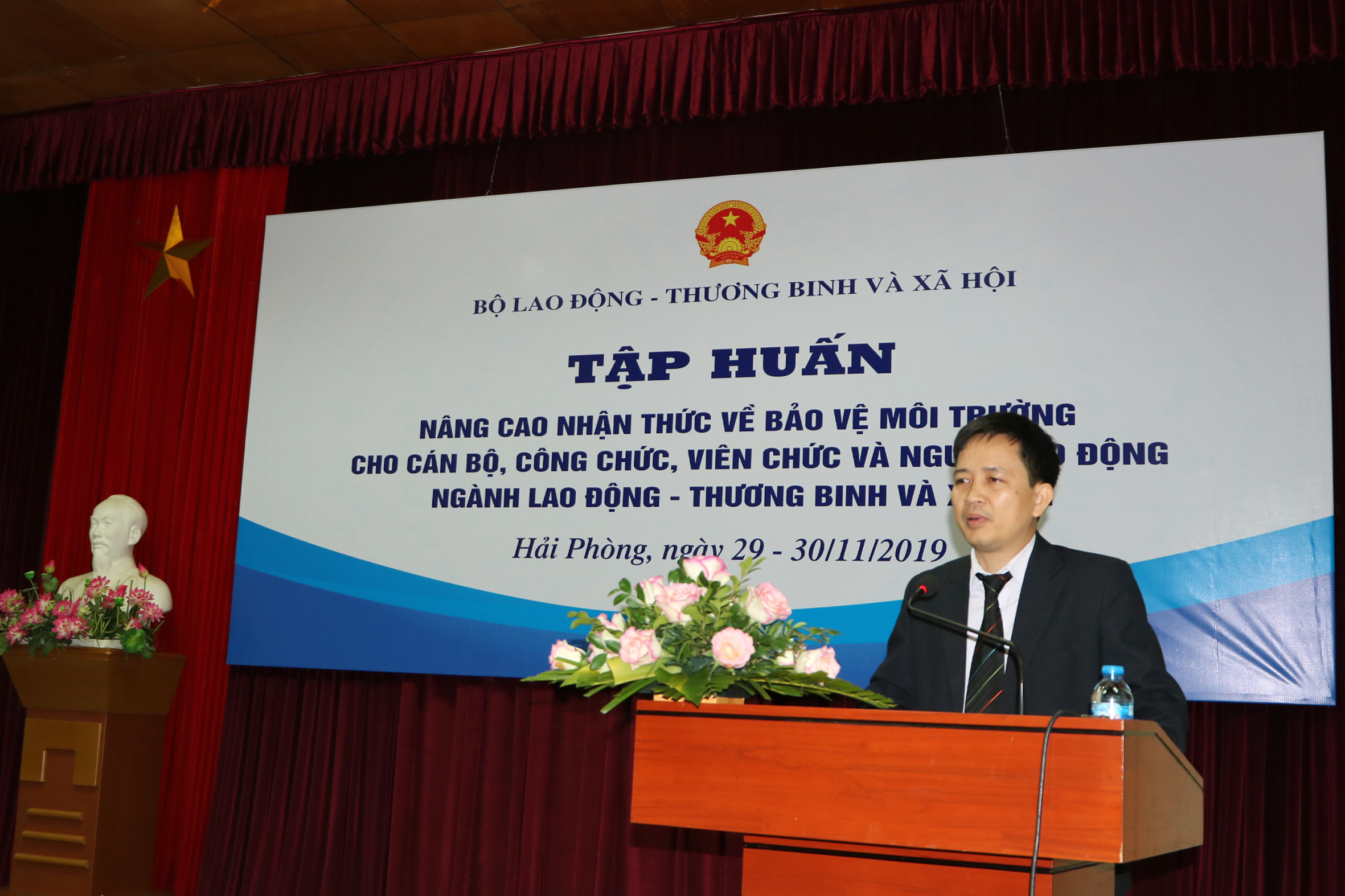Trong hai ngày 29, 30/11/2019, tại Hải Phòng, Bộ Lao động – Thương binh và Xã hội giao cho Trường Đào tạo, bồi dưỡng cán bộ, công chức lao động – xã hội chủ trì phối hợp với Văn phòng Bộ và Vụ Kế hoạch – Tài chính đã tổ chức lớp tập huấn “Nâng cao nhận thức về bảo vệ môi trường cho cán bộ, công chức, viên chức và người lao động ngành Lao động – Thương binh và Xã hội” cho hơn 120 đại biểu đến từ các đơn vị thuộc, trực thuộc Bộ LĐTB&XH và Sở Lao động TB&XH các tỉnh, thành phố trực thuộc Trung ương tham dự buổi khai mạc tập huấn ngày hôm nay.