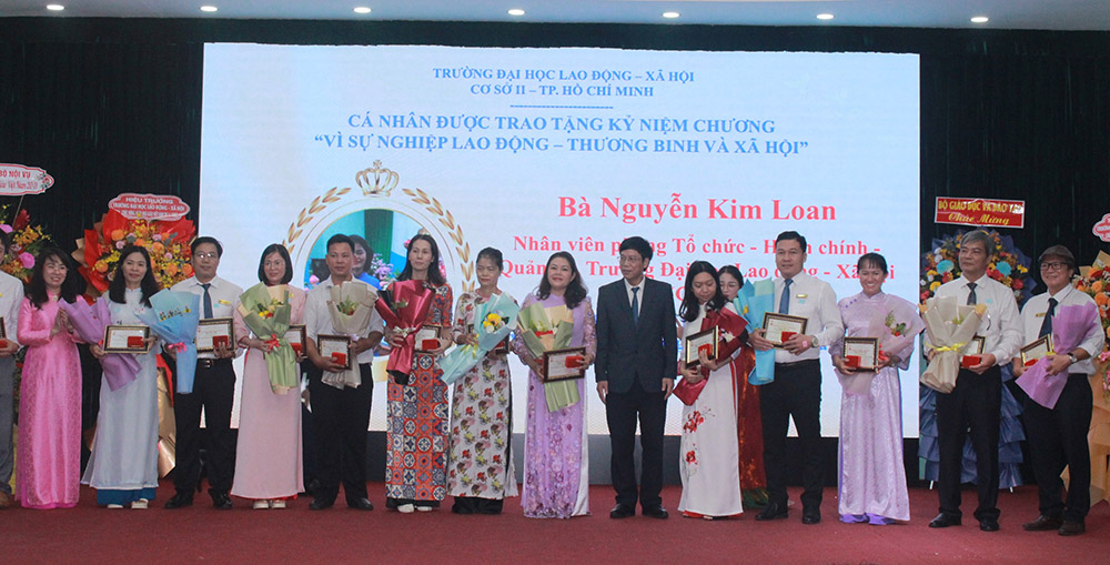 Đặc biệt, trong buổi lễ trang trọng này, chúng ta vui mừng được đón nhận và trao tặng Bằng khen, Kỷ niệm chương Vì sự nghiệp Lao động – Thương binh và Xã hội của Bộ trưởng Bộ Lao động – Thương binh và Xã hội trước đây và Bằng khen của Bộ trưởng Bộ Nội vụ cho các tập thể, cá nhân có thành tích xuất sắc. Đây là sự ghi nhận xứng đáng của Lãnh đạo Bộ, Lãnh đạo Nhà nước đối với những đóng góp bền bỉ, sáng tạo của cán bộ, giảng viên, viên chức và người lao động của Nhà trường.