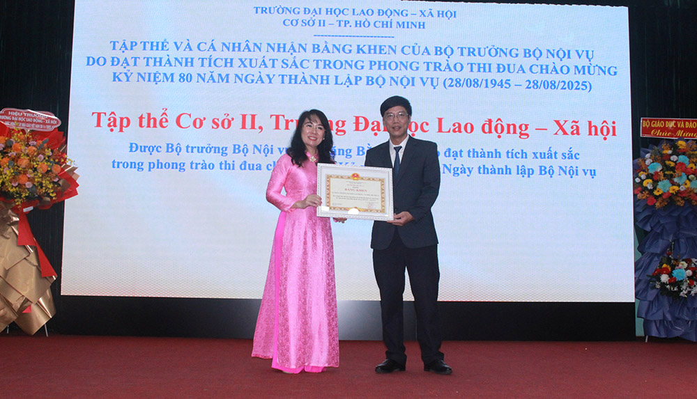 Tập thể Cơ sở II Trường Đại học Lao động – Xã hội nhận Bằng khen của Bộ trưởng Bộ Nội vụ